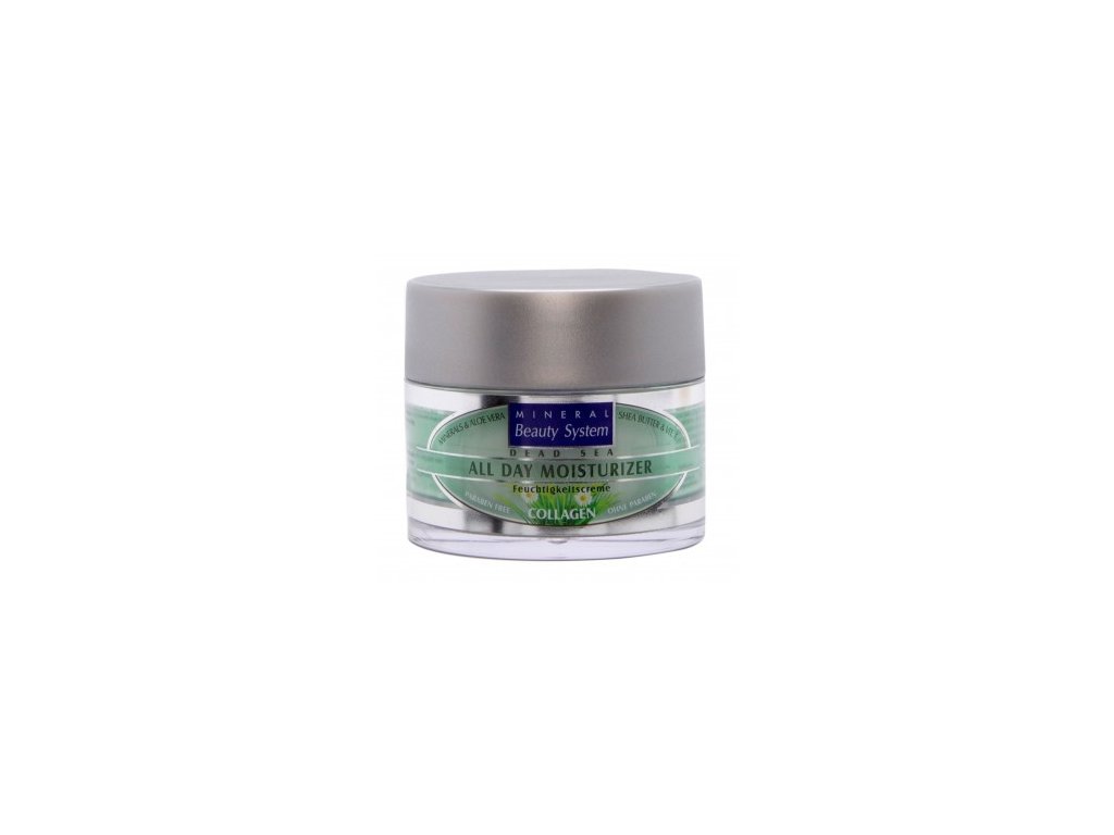 Hydratačný krém s kolagénom dodáva pokožke pružnosť, elasticitu a v kombinácii s minerálmi z Mŕtveho mora, vysokokvalitnými olejmi a vitamínmi vyživuje a zvlhčuje pokožku, oživuje ju a zanecháva ju hodvábnu a sviežu. Krém s efektom proti starnutiu pleti a tvorbe vrások. Celodenný hydratačný krém zmierňuje pocity napätia, vyrovnáva prírodné minerály, vitamíny a vlhkosť pokožky, harmanček chladí a dáva príjemný pocit sviežosti. Vitamín E vyživuje pokožku a chráni ju pred voľnými radikálmi a škodlivými vplyvmi prostredia. To udržuje prirodzenú odolnosť pokožky po celý deň. Obohatenie kolagénom sa pleť sa vyhladí, posilní a zároveň oživí. Má anti-aging efekt. Obsahuje: Minerály z mŕtveho mora, kolagén, aloe vera, vitamín E, bambucké maslo, nechtíkový olej, extrakt zo zeleného čaju, extrakt z rumančeka, jojobový olej, olivový olej, extrakt z granátového jablka Aplikujte na čistú pleť tváre, krku a dekoltu jemnými ťahmi. Vyhnite sa oblasti očí.Dodatočné parametre
