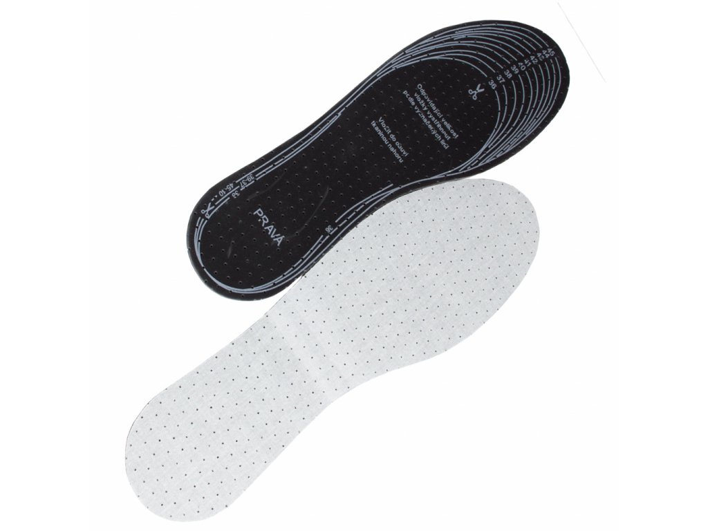 Odstrihávacia mäkká stielka zo šľahaného latexu s prídavkom aktívneho uhlia, ktoré neutralizuje a pohlcuje pachy v obuvi. Stielka zároveň zmäkčuje došľap a saje pot, vysu komfort nosenia obuvi Návod: Odstrihnite nožnicami stielku podľa veľkosti Vašej obuvi. Upravenú stielku vložte do obuvi tkaninou hore.Dodatočné parametre