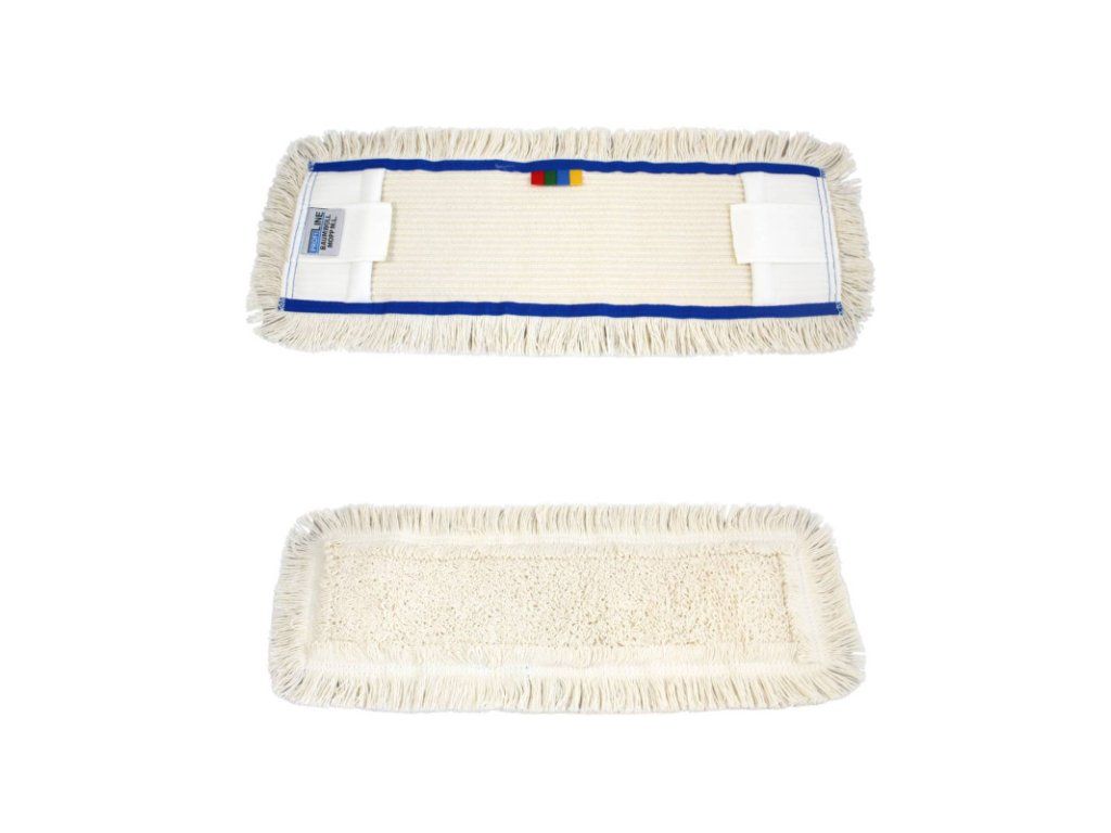Mop bavlna PROFI DUO flipper/kapsa 40cm s farebným značením Kapsový/flipprový bavlnený mop je vysokokvalitný bavlnený mop so šírkou 40 cm s uškami a kapsami po stranách pre uchytenie na držiak mopu. Jednotlivé vlákna bavlny sú na zadnej strane navzájom prepletené kvôli dlhšej životnosti mopu. Mopová časť je uchytená polyesterovou priadzou s vysokou trvanlivosťou. Tento bavlnený slučkový mop možno prať pri 90 ° C. Používa sa prevažne na mokré čistenie. Mop má na spodnej časti farebné prúžky, ktorými sa dá rozlíšiť prostredie kde sa používajú, napr. nemocničné priestory. Bavlnený mop sa používa na umývanie laminátových,lakovaných,drevených podláh a linolea a pod. Parametre: Rozmery: 40 cm Materiál: Bavlna Farba: Biela Uchytenie: KAPSA/FLIPPER (uška na úchyt)Dodatočné parametre