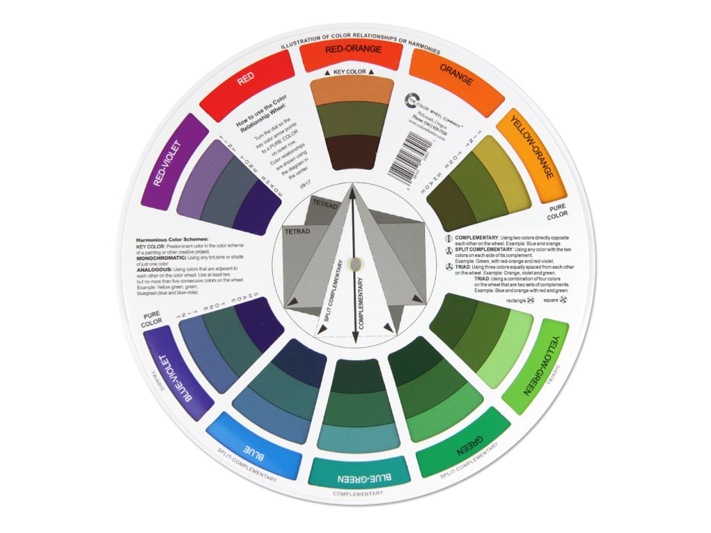 Moyra farebná paleta - Colour wheel je praktická pomôcka, ktorý vás rýchlo a jednoducho naučí ako správne miešať farebné pigmenty: Ktoré farby sa môžu kombinovať aby sme dosiahli požadovanú odtieň? Ktoré pigmenty sa k sebe hodia a ktoré najlepšie kontrastujú? Ako zosvetliť, alebo naopak stmaviť daný odtieň? Naučte sa princípy kolorimetrie vďaka Moyra farebnej palete - Colour wheel. Popis:Farebný kruh Strana A:Ukazuje, akú farbu získate zmiešaním 2 farieb (jedna na vonkajšom kruhu, jedna na vnútornom kruhu).Definície farieb:- Primárne farby: žltá, červená, modrá. Tieto farby sa nedajú vyrobiť zmiešaním, preto sú to základné farby.- Sekundárne farby: zelená, oranžová, fialová, ktoré vznikajú zmiešaním dvoch základných farieb.- Terciárne (stredné) farby: žltoranžová, červenooranžová, modrofialová, červenofialová, modrozelená, žltozelená, ktoré vznikajú zmiešaním primárnej a sekundárnej farby.- Teplé farby: červená, oranžová, žltá.- Studené farby: zelená, modrá, fialová. - Odtieň- Odtieň: Farba + biela- Tón: Farba + šedá- Odtieň: Farba + čierna - Hlavná farba vo farebnom mixe- Neutrálna sivá: kombinácia čiernej a bielej- Sila farby alebo matnosť- Svetlosť alebo tmavosť farby Farebný kruh Strana B:Ak chcete použiť koliesko na miešanie farieb otočte kolieskom tak, aby šípka ukazovala na zvolenú čistú farbu na vonkajšom kruhu. Zodpovedajúce farebné kombinácie sú zobrazené na obrázku v strede kruhu. - Komplementárne (opačné farby oproti sebe)- Doplnkové rozdelenie (okamžité susediace farby vedľa doplnkovej farby)- Triáda: Harmonické 3 farby (farby vo vrcholoch trojuholníka)- Tetrad: 4 farby (2 doplnkové sady) Farebná harmónia:- Monochromatický (kombinované farby z jedného plátku farebného kolieska)- Analogické (najmenej dve, ale nie viac ako päť susediacich farieb v kruhu, ktoré navzájom harmonizujú.) Počet: 1ksDodatočné parametre