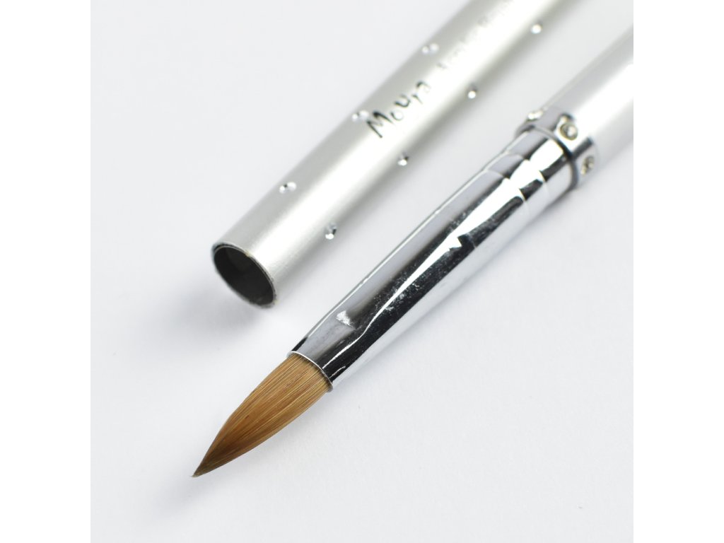 Moyra štetec na akryl, zmiešané štetiny č.8 - štetec vysokej kvality z kombinácie prírodného a umelého vlasu. Je určený na prácu s akrylovým práškom pri tvorbe akrylových nechtov alebo pri vytváraní 3D ozdôb z akrylu (kvety a pod.). Vhodný aj pre použitie na prácu s Fusion acrylgelom. [nbsp] Použitie: Očistíme prírodné nechty, potom ich zmatníme. Následne nanesieme Nail prep a Primer kvôli priľnavosti materiálu. Štetec namočíme do porcelánovej tekutiny (liquidu) a jemne otrieme o okraj misky. Potom štetec namočíme do porcelánového prášku, vytvarujeme guľôčku o veľkosti hrášku a nanesieme rovnomerne do požadovaného tvaru. Pracujeme rýchlo, pretože materiál rýchlo vytvrdne. [nbsp] Tip: Po každom použití odporúčame štetec dôkladne umyť vodou alebo pre dlhšiu životnosť odporúčame Moyra čistič na štetce. [nbsp] Balenie: 1ksDĺžka štetín: 16mmDodatočné parametre