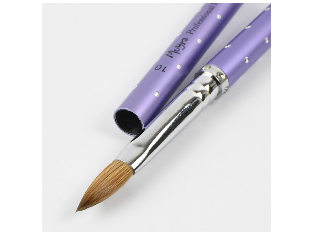 Moyra štetec na akryl Kolinsky č.10 - štetec vysokej kvality z prírodného vlasu. Je určený na prácu s akrylovým práškom pri tvorbe akrylových nechtov alebo pri vytváraní 3D ozdôb z akrylu (kvety a pod.). Vhodný aj pre použitie na prácu s Fusion acrylgelom. [nbsp] Použitie: Očistíme prírodné nechty, potom ich zmatníme. Následne nanesieme Nail prep a Primer kvôli priľnavosti materiálu. Štetec namočíme do porcelánovej tekutiny (liquidu) a jemne otrieme o okraj misky. Potom štetec namočíme do porcelánového prášku, vytvarujeme guľôčku o veľkosti hrášku a nanesieme rovnomerne do požadovaného tvaru. Pracujeme rýchlo, pretože materiál rýchlo vytvrdne. [nbsp] Tip: Po každom použití odporúčame štetec dôkladne umyť vodou alebo pre dlhšiu životnosť odporúčame Moyra čistič na štetce. [nbsp] Balenie: 1ksDodatočné parametre
