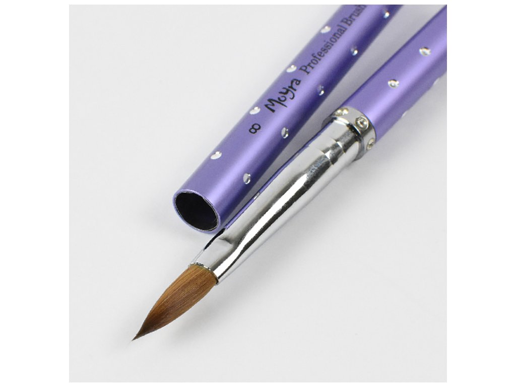 Moyra štetec na akryl Kolinsky č.8 - štetec vysokej kvality z prírodného vlasu. Je určený pre prácu s akrylovým práškom pri tvorbe akrylových nechtov alebo pri vytváraní 3D ozdôb z akrylu (kvety a pod.). Vhodný aj pre použitie na prácu s Fusion acrylgelom. [nbsp] Použitie: Očistíme prírodné nechty, potom ich zmatníme. Následne nanesieme Nail prep a Primer kvôli priľnavosti materiálu. Štetec namočíme do porcelánovej tekutiny (liquidu) a jemne otrieme o okraj misky. Potom štetec namočíme do porcelánového prášku, vytvarujeme guľôčku o veľkosti hrášku a nanesieme rovnomerne do požadovaného tvaru. Pracujeme rýchlo, pretože materiál rýchlo vytvrdne. [nbsp] Tip: Po každom použití odporúčame štetec dôkladne umyť vodou alebo pre dlhšiu životnosť odporúčame Moyra čistič na štetce. [nbsp] Balenie: 1ksDodatočné parametre