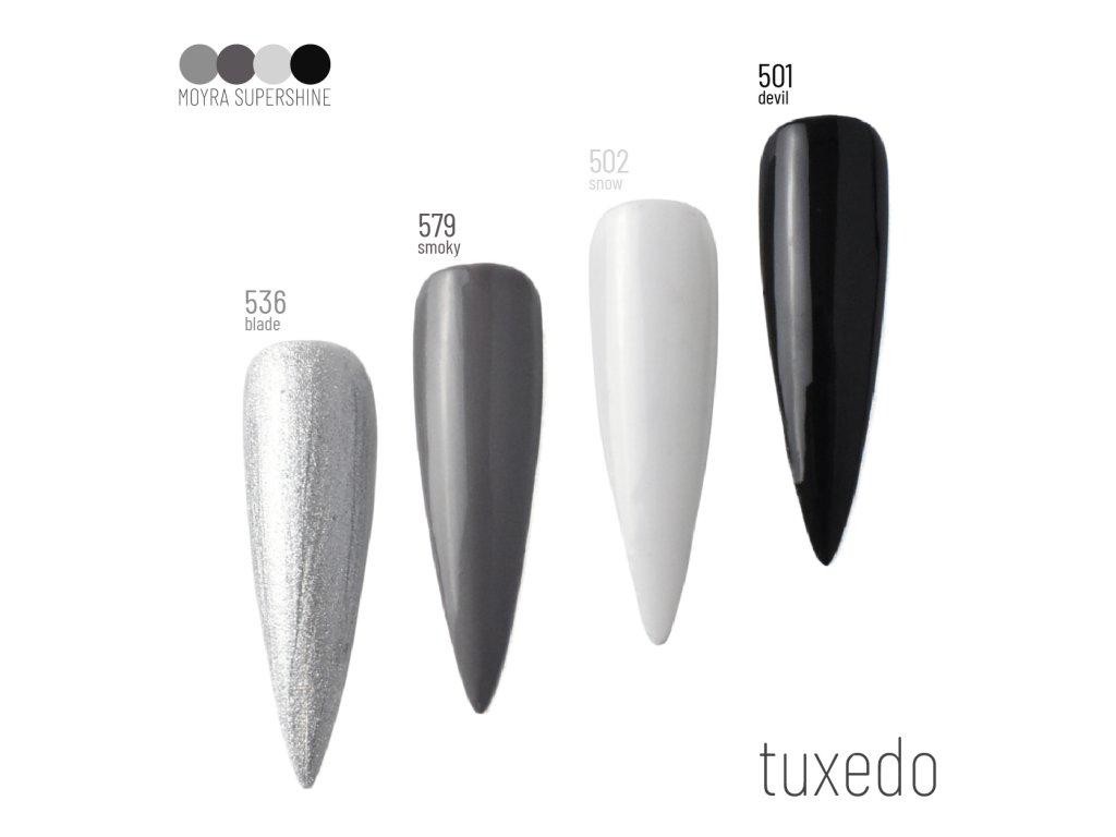 Moyra Supershine - sú bezvýpotkové, farebné gély s vysokou pigmentáciou a s výbornou krycou schopnosťou už v jednej vrstve. Vieme ich použiť na celofarebné nechty ale aj na zdobenie už hotových, zaleskovaných nechtov (tým, že nemajú výpotok, držia na lesku a nezošúpu sa). Po vytvrdení v lampe je výsledkom extra lesklý povrch nechtu, no pre dlhšiu výdrž manikúry ju odporúčame ukončiť vrchným leskom. Gél je súčasťou špeciálnej Deliashop kolekcie TUXEDO spolu s gélmi 536 blade, 579 smoky a 501 devil. Gél je súčasťou špeciálnej Deliashop kolekcie EXPLORER spolu s gélmi 540 caffé latte, 541 brownie a 580 hot chocolate. Gél je súčasťou špeciálnej Deliashop kolekcie HOLIDAY spolu s gélmi 545 police, 572 vivid purple a 567 vivid green. Gél je súčasťou špeciálnej Deliashop kolekcie ETHEREAL spolu s gélmi 572 vivid purple, 546 elegant a 539 peppermint. Tip: Ak použijete na Supershine farebný gél, vrchný lesk, nemali by ste nechty príliš pretvrdzovať a v lampe nechať len 30sekúnd aby náhodou nedošlo k nežiaducemu ošupovaniu. Vhodnými top gélmi na Supershine-y sú: Magic gloss bezvýpotkový top a Evershine bezvýpotkový top (v žiadnom prípade nedávať Flexi Top výpotkový). Doba vytvrdnutia: UV/LED 1 interval Obsah: 5gDodatočné parametre