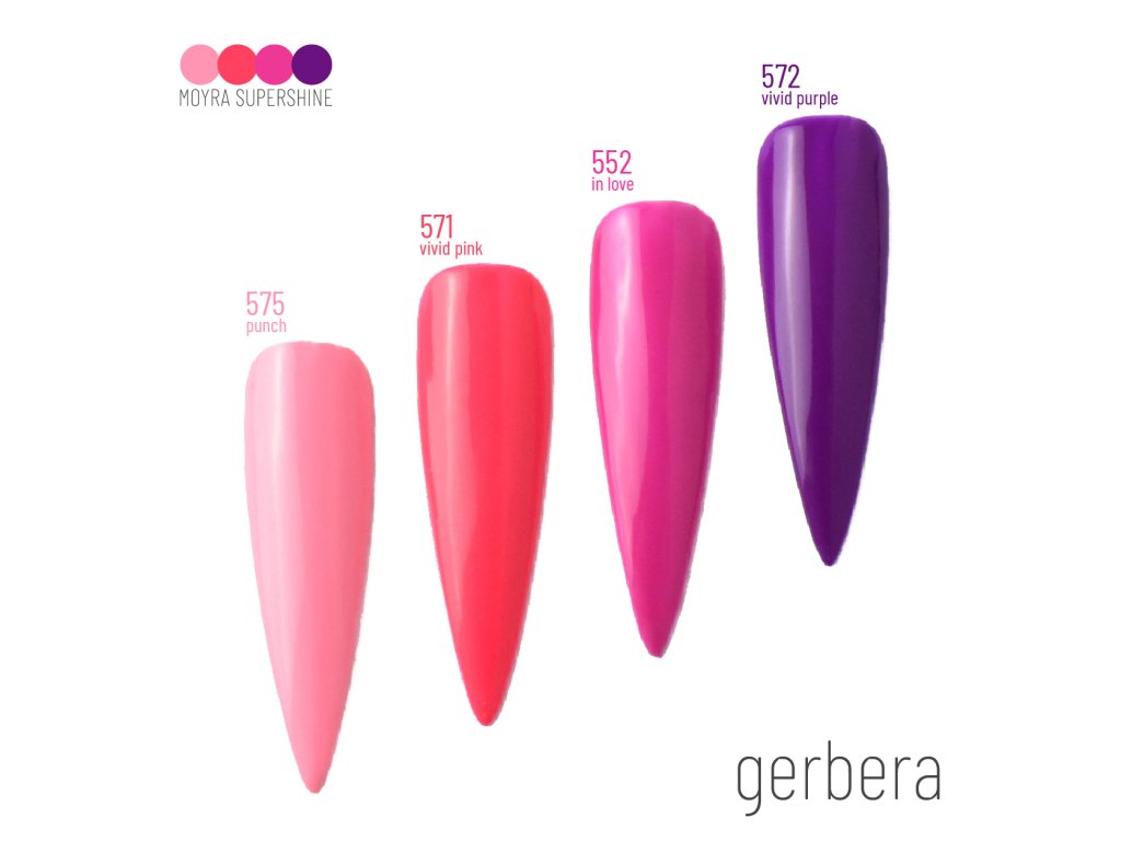 Moyra Supershine - sú bezvýpotkové, farebné gély s vysokou pigmentáciou a s výbornou krycou schopnosťou už v jednej vrstve. Vieme ich použiť na celofarebné nechty ale aj na zdobenie už hotových, zaleskovaných nechtov (tým, že nemajú výpotok, držia na lesku a nezošúpu sa). Po vytvrdení v lampe je výsledkom extra lesklý povrch nechtu, no pre dlhšiu výdrž manikúry ju odporúčame ukončiť vrchným leskom. Tip: Ak použijete na Supershine farebný gél, vrchný lesk, nemali by ste nechty príliš pretvrdzovať a v lampe nechať len 30sekúnd aby náhodou nedošlo k nežiaducemu ošupovaniu. Vhodnými top gélmi na Supershine-y sú: Magic gloss bezvýpotkový top a Evershine bezvýpotkový top (v žiadnom prípade nedávať Flexi Top výpotkový). Doba vytvrdnutia: UV/LED 1 interval Obsah: 5gDodatočné parametre