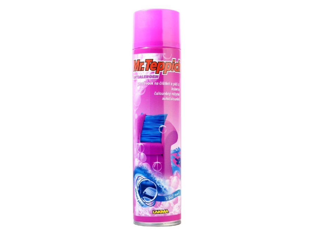 Mr. TEPPICH ANTIALERGEN na čalúnenie „SUCHÁ PENA“ – vôňa mora 600ml Mr. Teppich Antialergén- suchá pena je účinný prostriedok na ručné čistenie a starostlivosť o koberce, čalúnený nábytok, autopoťahy a detské autosedačky, ale aj na bezpečnostné pásy a batožinový priestor vo vozidle. Vďaka antialergénnym zložkám dokonale odstraňuje prachové alergény, uľahčuje upratovanie zvieracích chlpov, zabraňuje množeniu baktérií a roztočov, čo je dôležité pre zdravie celej vašej rodiny. Chráni farby, zosilňuje kobercové vlákna. Likviduje nepríjemné pachy a zanecháva príjemnú vôňu kvetov. Prípravok obsahuje polymér, ktorý koberec chráni proti opätovnému znečisteniu. Vlastnosti: na koberce, čalúnenie, autopoťahy a detské sedačky likviduje prachové alergény príjemná morská vôňa Použitie: Dôkladne vysajte čistený povrch. Prípravok riadne pretrepte. Nastriekajte penu na znečistené miesto. Penu dôkladne votrite špongiou alebo kefou do povrchu. Nechajte schnúť (podľa materiálu a rozsahu plochy 20 minút až 2 hodiny). Na záver opäť dôkladne vysajte. Cena je za bal./600mlDodatočné parametre