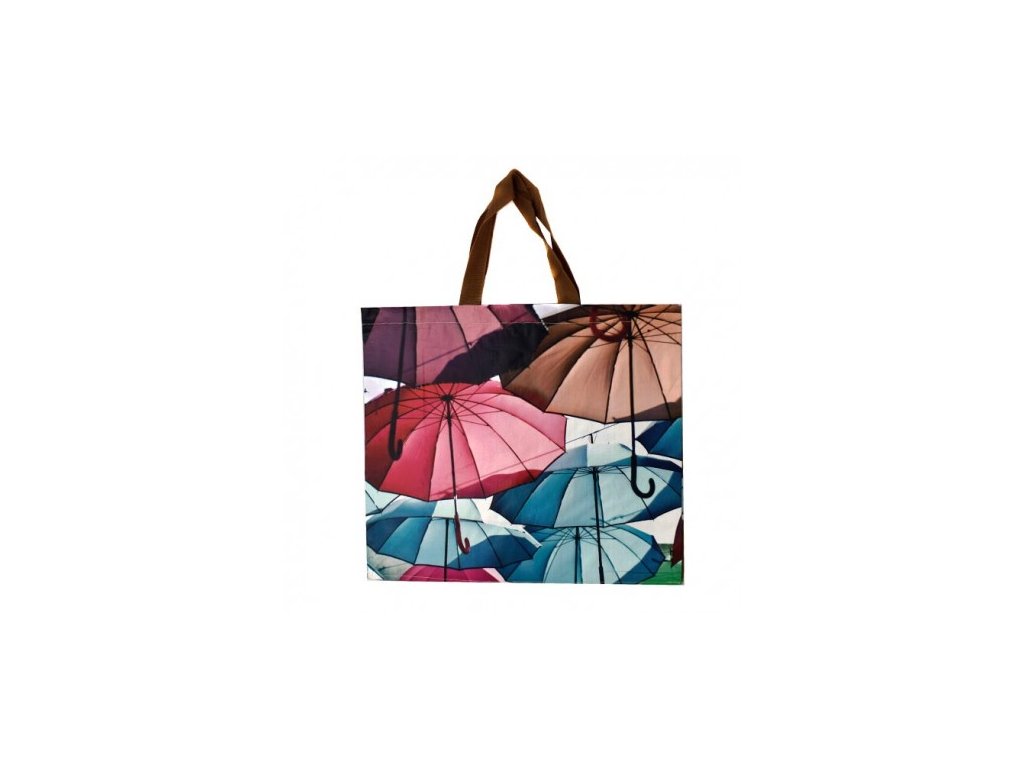 Nákupná pevná taška s uchom so vzorom dáždnikov. Zloženie: material: polypropylén (PP) tkaný. Rozmer: 45x39,5x17,5cm