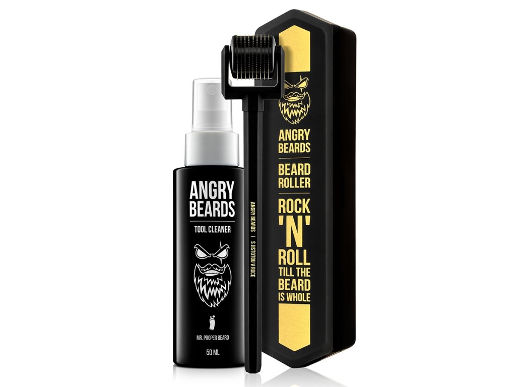 Náradie na rast fúzov ANGRY BEARDS Beard roller je valček s 540 titánovými mikroihličkami s dĺžkou 0,5 mm, ktoré dokonale prekrvujú pokožku a pomáhajú pri vstrebávaní výrobkov na fúzy. Súčasťou balenia je aj čistič nástrojov, ktorý vám pomôže valček vyčistiť.