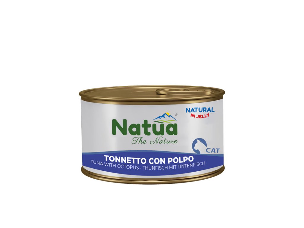 Natua Cat Adult - Filety z tuniaka a chobotnica sú doplnková strava pre dospelé mačky vo forme lahodných filiet a chobotnice, ktoré sú medzi mačkami mimoriadne obľúbené. 100% prírodný produkt bez konzervantov a prídavných látok.Dodatočné parametre