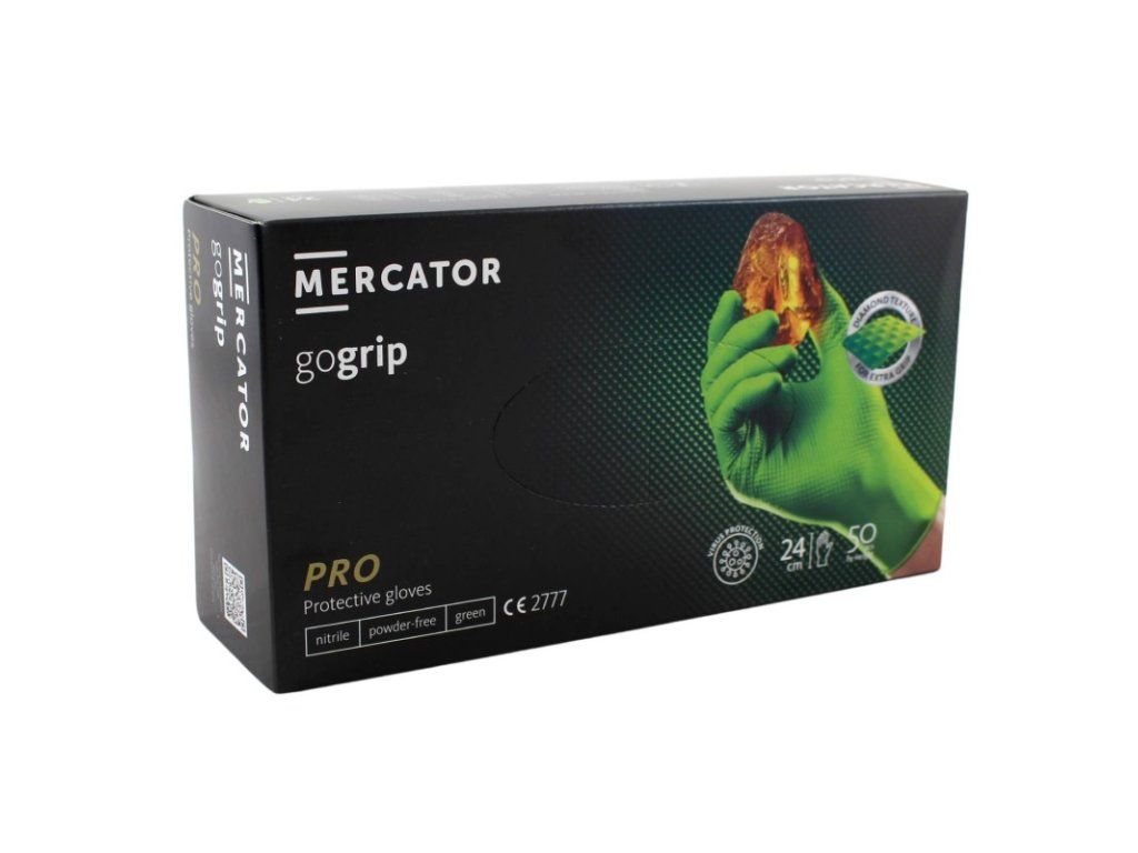 Nitrilové ochranné rukavice zelené Mercator gogrip PRO – M 50ks Mimoriadne elastické nitrilové rukavice MERCATOR® gogrip sú 3x silnejšie ako štandardné rukavice dostupné na trhu. Tieto rukavice vyrobené z pevného nitrilu sa vyznačujú unikátnou diamantovou 3D textúrou, vďaka ktorej je Váš úchop silný a stabilný a zároveň neobmedzuje Vašu presnosť. Vďaka originálnej štruktúre MERCATOR® gogrip môžete obsluhovať mobilné zariadenia bez odnímania rukavíc. Navyše revolučná diamantová 3D textúra zabraňuje potivosti rúk pri používaní, a to zvyšuje pracovný komfort pri minimalizácii rizika poškodenia kože rukou. Odporúčajú sa predovšetkým v automobilovom odvetví pri obsluhe strojov, konštrukčnom, palivovom montážnom a priemyselnom odvetví – všade tam, kde Vaša ruka potrebuje ochranu pred zašpinením a je vystavená kontaktu s chemickými látkami, ako sú oleje a mazivá. Pružnosť a vysoká pevnosť v ťahu umožňujú znížiť spotrebu rukavíc. Kategória III, typ B Balenie obsahuje 50 ks ochranných rukavíc Ochrana proti chemikáliám ako sú oleje a mazivá, bariéra pre baktérie, plesne a vírusy Využitie: stavebníctvo, baníctvo, chemický priemysel, hutníctvo, stolárstvo, sklady, automotive, lakovne, potravinárstvo, upratovacie spoločnosti a pod. Nepudrované Jednoduché navliekanie rukavíc a pevný úchop vďaka špeciálnej diamantovej textúre – aj v mastnom a mokrom prostredí Vyrobené z nitrilu 3x silnejšie ako štandardné nitrilové rukavice Univerzálne, vhodné pre ľavú aj pravú ruku Umožňujú obsluhovať dotykové zariadenia Certifikované aj pre styk s potravinami Normy a certifikáty: EN ISO 374-1, EN ISO 374-5, EN 16523-1, EN ISO 21420, Nariadenie (EÚ) 2016/425, EN ISO 374-2, EN ISO 374-4