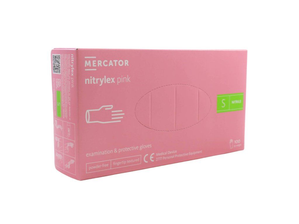 Nitrilové rukavice jednorázové MERCATOR nitrylex - ružové S 100ks