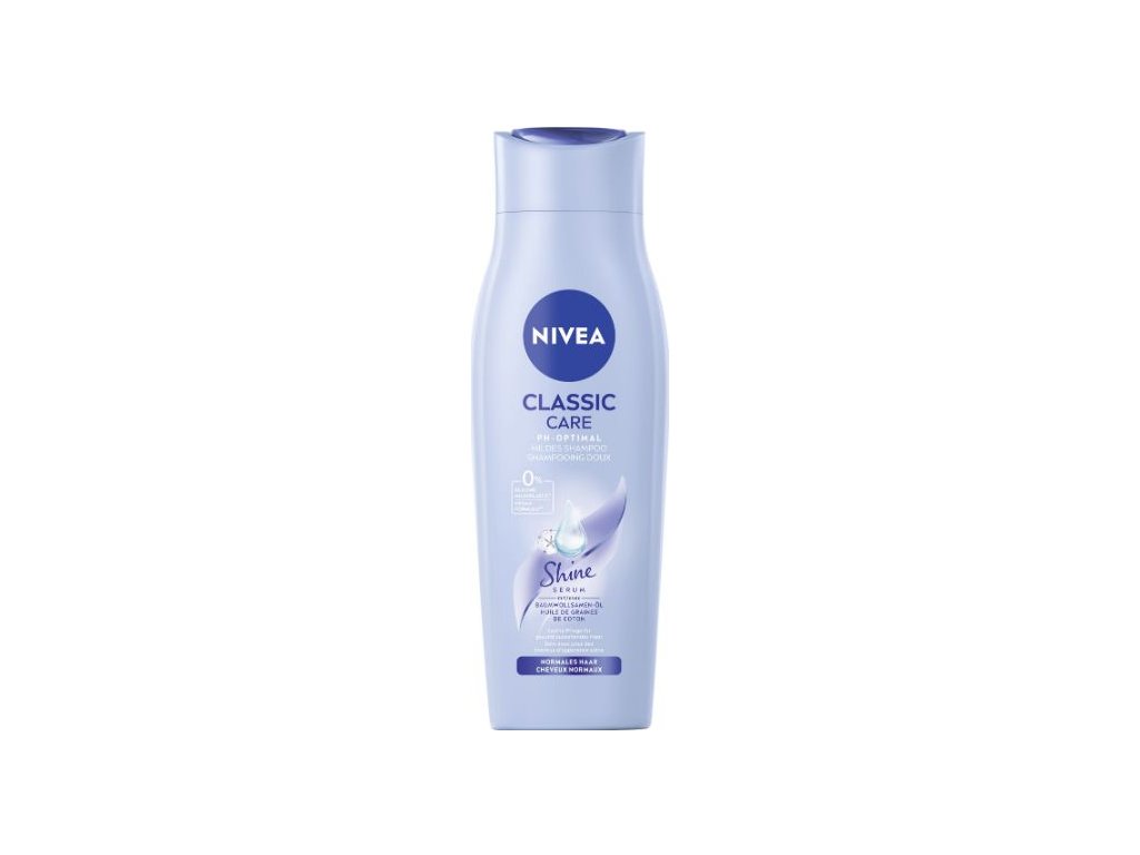 Šampón na vlasy Nivea Classic care je určený pre normálne vlasy, ktoré ostávajú jemné, hebké a svieže po každom použití. Šampón vyživuje pokožku hlavy. Vhodný na každodenné použitie. Šampón aplikujte na mokré vlasy, vytvorte bohatú penu a následne opláchnite. Zabráňte kontaktu s očami. V prípade ich zasiahnutia, oči vypláchnite veľkým množstvom vody. Uchovávajte mimo dosahu detí. Objem balenia 250ml.Dodatočné parametre