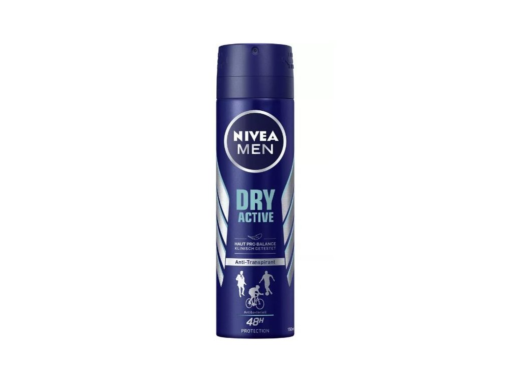 Nivea Men Dry Active je výkonný pánsky antiperspirant v spreji 150ml, ktorý je navrhnutý pre mužov s aktívnym životným štýlom. Jeho špeciálna technológia DryPlus® so zložkami proti poteniu zabezpečuje až 48 hodín spoľahlivej ochrany pred vlhkosťou a telesným zápachom. Vďaka sviežej, mužnej vôni je ideálny na každodenné používanie – do práce, na šport aj na náročné dni.Dodatočné parametre
