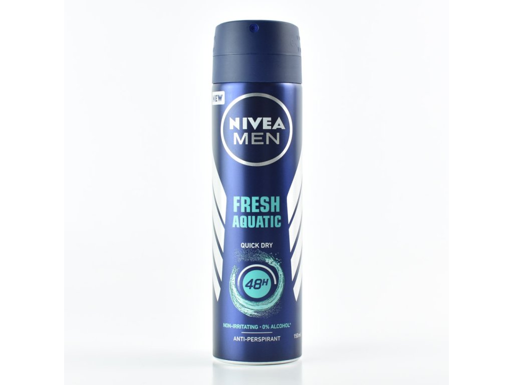 Antiperspirant Nivea Men Fresh Aquatic má inntenzívnu a dlhotrvajúcu sviežu vôňu. Ochráni vás pred potením a nepríjemným zápachom po dobu 48 hodín. Rýchlo zychá, neobsahuje alkohol, a preto nedráži pokožku a nespôsobuje jej začervenanie. 48 hodinová ochrana svieža vôňa rýchloschnúci dermatologicky testovaný Použitie: Pred každým použitím antiperspirant dobre pretrepte. Nastriekajte ho zo vzdialenosti cca 15 cm priamo na pokožu podpazušia a počkajte pár sekúnd, kým úplne zaschne.Upozornenie: Mimoriadne horľavý aerosól. Tlaková nádoba: pri zahriatí môže vybuchnúť. Uchovávajte mimo dosahu tepla, horúcich povrchov, iskier, otvoreného ohňa a iných zdrojov zapálenia. Nefajčite. Nestriekajte na otvorený oheň a iný zdroj vznietenia. Neprepichujte alebo nespaľujte, a to ani po spotrebovaní obsahu. Chráňte pred slnečným žiarením. Nevystavujte teplotám nad 50°C/122°F. Do odpadu vhadzujte iba úplne vyprázdnenú fľašu. Používajte výhradne na stanovený účel. Nepoužívajte na poranenú, či podráždenú pokožku.Vyvarujte sa dlhšej aplikácie a priameho vdychovania. Uchovávajte mimo dosahu detí.Objem: 150ml Dodatočné parametre