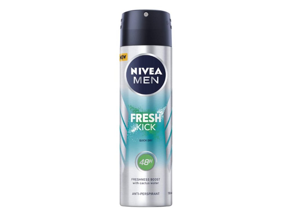 Nivea Men Fresh Kick je pánsky antiperspirant v spreji 150ml, ktorý kombinuje sviežu vôňu kaktusovej vody s účinným ochranným účinkom až 48 hodín. Technológia “Skin-Cool Complex” prináša chladivý efekt na pokožku a zároveň pomáha neutralizovať nepríjemný telesný zápach.Dodatočné parametre