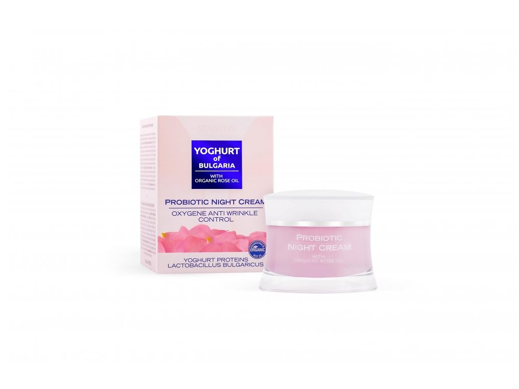 Nočný pleťový krém proti vráskam probiotický s organickým ružovým olejom YOGHURT OF BULGARIA 50 ml