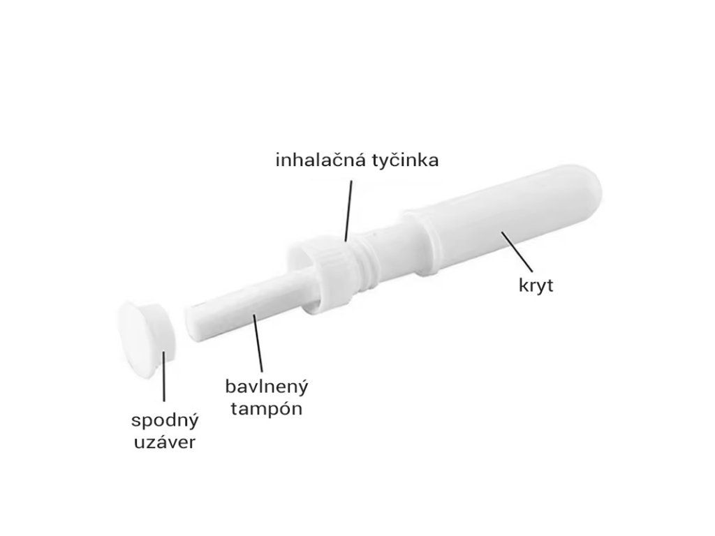 Inhalačná nosová tyčinka, pre jej funkciu tiež nazývaná aromaterapeutický inhalátor, je výbornou pomôckou a jedným zo spôsobov aplikácie éterických olejov v aromaterapii. Je to vlastne plastová tuba, v ktorej je umiestnený bavlnený tampón s vysokou savosťou, na ktorý môžete nakvapkať éterické oleje, prípadne zmes, podľa vašich preferencií a potrieb. Absorbuje v priemere 10-20 kvapiek éterického oleja. Je uzatvárateľná.Dodatočné parametre
