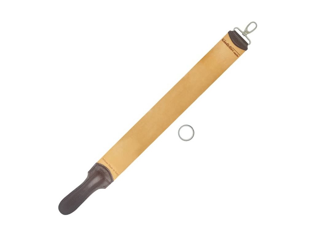 Kvalitný obťahovací remeň TGS dlhý 65 cm je vyrobený z najkvalitnejšej hovädzej kože. Je vybavený koženou rukoväťou a otočnou karabínou s pridaným krúžkom s teflónovou vložkou, ktorý zabraňuje opotrebovaniu pri zavesení a držaní. Zadná strana je vyrobená z plátna, ktoré zachytáva nečistoty a uvoľnené častice ocele.
