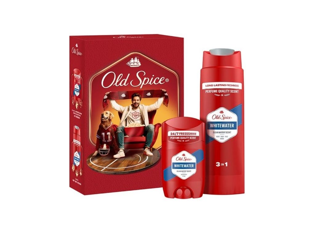 Old Spice Whitewater pánsky darčekový set obsahuje tuhý dezodorant stick 50 ml a sprchový gél 250 ml, ktoré spolu poskytujú komplexnú starostlivosť a sviežosť po celý deň. Set je ideálny ako darček alebo praktický balíček pre každodenné použitie. Tuhý dezodorant stick dlhodobo chráni proti zápachu a pocitu vlhkosti, zatiaľ čo svieža a energická vôňa Whitewater dodáva pocit čistoty a sebavedomia. Sprchový gél dôkladne čistí pokožku, hydratuje ju a zanecháva svieži pocit po sprchovaní.Dodatočné parametre
