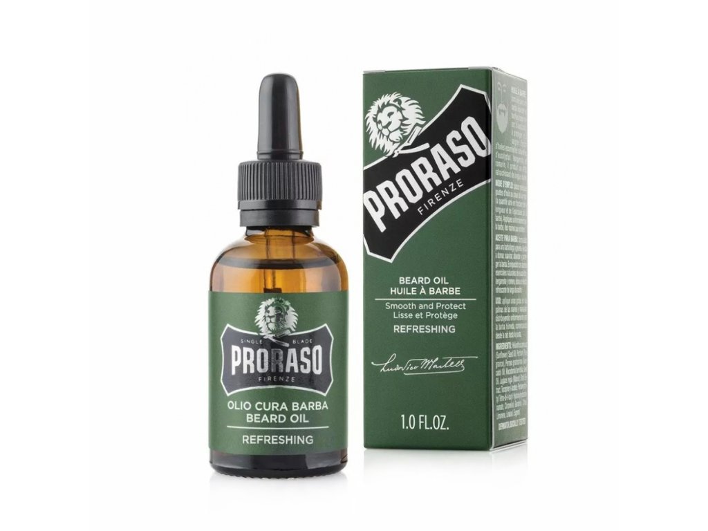 Osviežujúci olej na bradu PRORASO Refreshing pre mäkšiu a zdravšiu bradu. Obsahuje prírodné esenciálne oleje z eukalyptu, bergamotu a rozmarínu, vďaka ktorým brada nielen vonia, ale aj príjemne osviežuje.