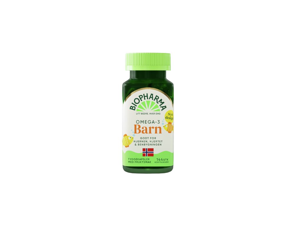 Biopharma je nórska značka známa svojou čistotou a kvalitou spracovania rýb z arktických vôd. Každá šarža prechádza prísnou kontrolou čistoty a bezpečnosti. OMEGA-3 žuvacie kapsule sú navrhnuté špeciálne pre deti – s lahodnou príchuťou, vysokým obsahom DHA a doplnením vitamínov, ktoré podporujú zdravý rast, mozgovú činnosť a silnú imunitu.