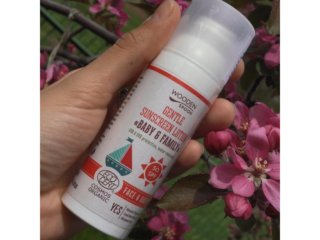 Opaľovacie telové mlieko v tube Baby & Family SPF 50 Wooden Spoon 50ml