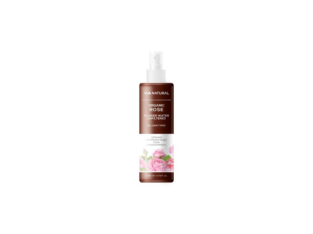 Organická ružová pleťová voda Via natural 200ml Mimoriadne jemná kozmetická voda na čistenie, osvieženie a výživu pokožky. Tonizuje a upokojuje pleť a stimuluje jej regeneračné procesy. Jej unikátne biologicky aktívne zloženie a prírodný obsah ružového oleja predurčujú univerzálne použitie pre akýkoľvek typ pleti. Jedným z najzaujímavejších aspektov ružovej pleťovej vody je jej schopnosť poskytnúť hydratáciu a zároveň jemne upokojiť podráždenú pokožku. Je to ideálna voľba pre tých, ktorí majú citlivú pokožku alebo bojujú s začervenaním. Ružová voda je balzam pre pokožku, ktorý dodáva živiny a zanecháva ju sviežu. Ružová voda je známa svojimi upokojujúcimi vlastnosťami a môže pomôcť vyvážiť pH pokožky, čím ju pripraví na ďalšie kroky v starostlivosti o pleť. Okrem toho, ružová voda má aj antioxidačné vlastnosti. Obsahuje vitamíny A a C a ďalšie antioxidanty, ktoré pomáhajú bojovať proti voľným radikálom a chrániť pokožku pred starnutím a poškodením. Ružová pleťová voda sa tiež stala symbolom relaxácie a starostlivosti o dušu. Jej jemná kvetinová vôňa je známa svojimi upokojujúcimi účinkami na nervový systém, čím prispieva k pocitu pokoja a harmónie. Použitie Aplikujte s vatovým tampónom na oblasť tváre a krku ráno a večer. Jemne nastriekajte na tvár, krk alebo vlasy a nechajte ju pôsobiť svojou osviežujúcou silou. Môže slúžiť ako dokonalý spôsob na očistenie pokožky pred ďalšími kroky v starostlivosti o pleť alebo ako osviežujúci sprej počas dňa na dodanie energie a zmiernenie stresu.Dodatočné parametre
