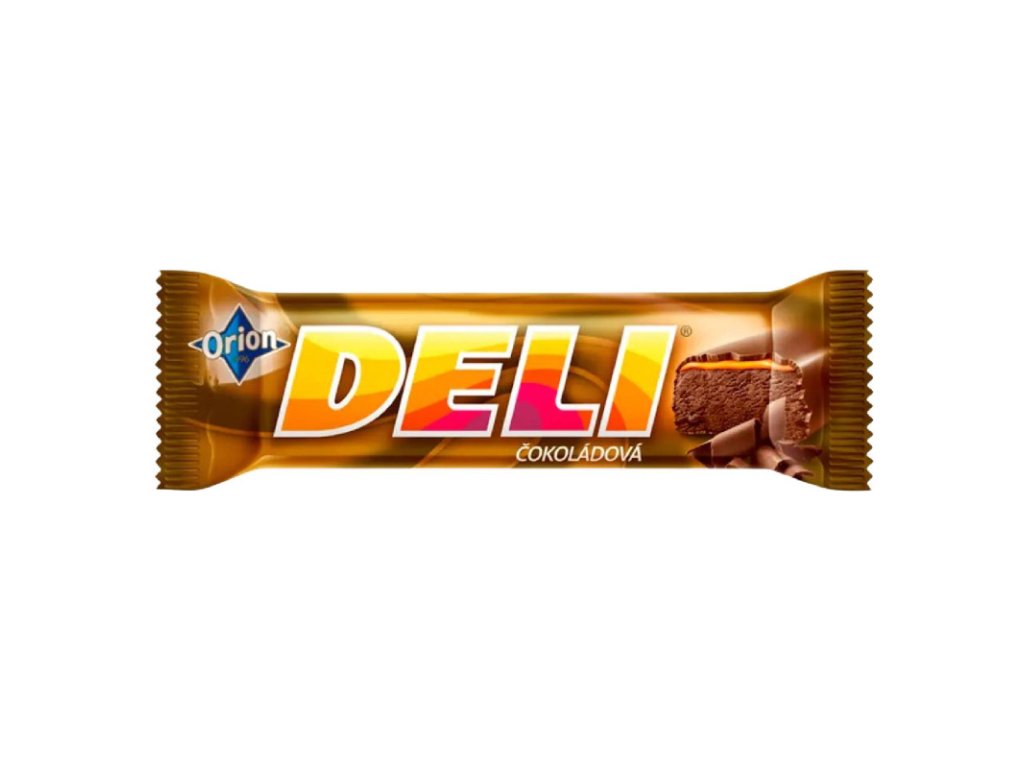 ORION DELI Čokoládová 35 g Najlepšie je zostať nad vecou. A s tyčinkou DELI vo vrecku to ide naozaj ľahko. Táto šťavnatá čokoládová tyčinka s jemnou konzistenciou a skvelými príchuťami vznikla už v roku 1980. Dopriať si dvojitú porciu čokolády niekedy nie je úplne od veci. Jemne našľahaná čokoládová náplň s tenkou vrstvou karamelu zaliata horkou čokoládou je rajom pre všetkých fajnšmekrov. Zloženie: Cukor, glukózový sirup, kakaová hmota, rastlinné tuky (palmový, olej zo semien maslovníka), sušené mlieko, kakaový prášok so zníženým množstvom tuku, kakaové maslo, mliečny tuk, sušené vaječné bielky, emulgátory (lecitíny, polyglycerolpolyricínoleát), arómy, jedlá soľ, farbivá (meďnaté komplexy chlorofylov a chlorofylínov, kurkumín), extrakt kurkumy, Okrem kakaového masla obsahuje čokoláda aj iné rastlinné tuky Informácie o alergénoch: Môže obsahovať arašidy, orechy a sóju. Výživové údaje na 100 g: Energetická hodnota [kJ]: 1822 Energetická hodnota [kcal]: 433 Tuky [g]: 14 z toho nasýtené mastné kyseliny [g]: 7,5 Sacharidy [g]: 73 z toho cukry [g]: 56 Vláknina [g]: 2,3 Bielkoviny [g]: 3,1 Soľ [g]: 0,17 Skladovanie: Skladujte v suchu, chráňte pred teplom. Cena je za bal./35g