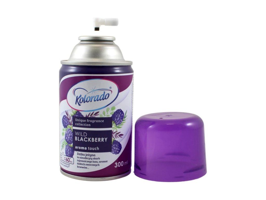 Osviežovač vzduchu Kolorado Aroma Touch 300ml – LESNÉ ČERNICE Osviežovač vzduchu určený do automatických dávkovačov Kompatibilný s automatickými dávkovačmi : - Smartair, Springair, Merida, Glade a iné Možnosť použitia aj samostatne bez dávkovača Založený na suchej technológii (nevytvára „mokrú hmlu“). Vytvára príjemnú atmosféru Bežná výdrž náplne 60 dní Objem: 300 ml / 2400 dávok Vôňa: Wild Blackberry – svieža vôňa černíc v kombinácií s lesnými tónmi Cena za 1 ksDodatočné parametre
