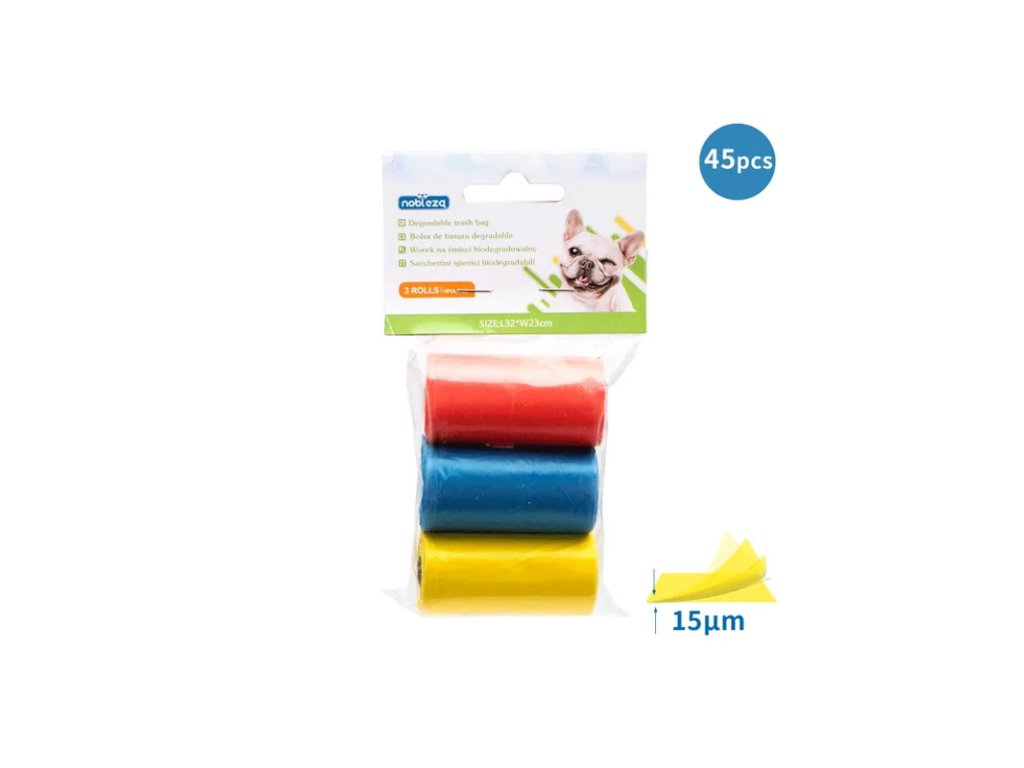 Oxo-bio rozložitelné sáčky na exkrement Nobleza 3 rolky - farebné 3x15ks