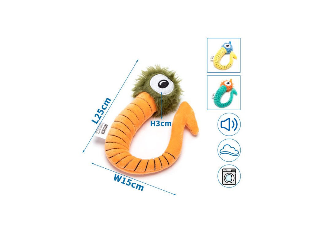 Plyšová hračka Nobleza - Little Worm je ideálnym spoločníkom v tvare červíka pre všetky plemená psov. S dentálnou funkciou a pískadlom. Vhodná na pranie v pračke.Dodatočné parametre