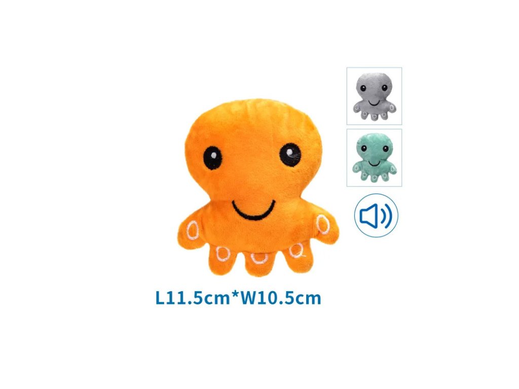 Plyšová hračka pre psa Nobleza - chobotnica 11,5cm - je ideálnym jemným spoločníkom pre všetky plemená psov. Pri stlačení hračka píska.Dodatočné parametre