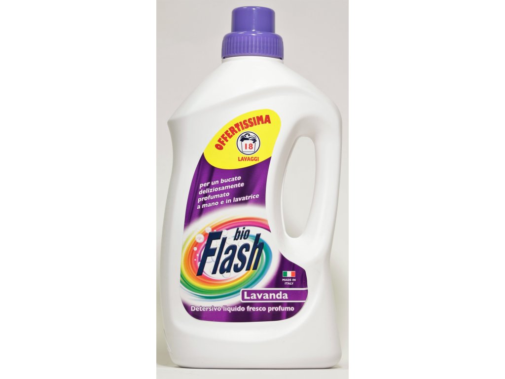 Taliansky prací gél Bio Flash so sviežou a príjemnou vôňou s prídavkom prírodného mydla na pranie farebných tkanín z bavlny, vlny, hodvábu a iných tkanín zo syntetických vlákien. Univerzálny pre biele aj farebné tkaniny.