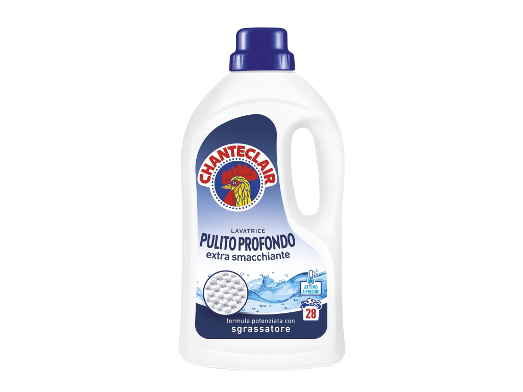 Gél na pranie CHANTE CLAIR PULITO PROFONDO vďaka svojmu zloženiu skvele vyperie bielizeň všetkých farieb. Vďaka jeho zloženiu je vhodný aj na syntetické materiály. Tento prací gél bol vyrobený v Taliansku. Disponuje celkovým objemom 1260 ml a vydrží až na 28 praní.