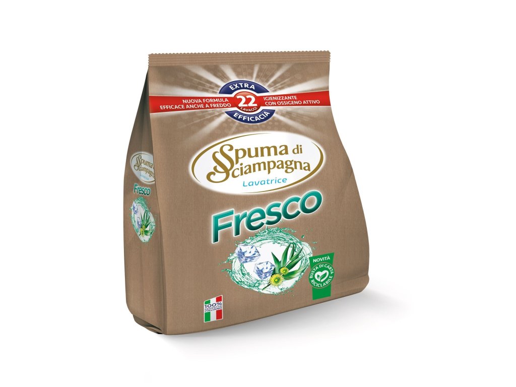 Prací prášok Spuma di Sciampagna FRESCO obsahuje formulu aktívneho kyslíku, ktorá znásobuje praciu silu. Vhodný na bielu a farebnú bielizeň.