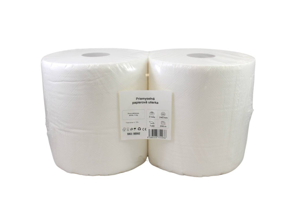 Priemyselná papierová utierka Ø 24 CM, 200 M, výška 24 CM(2ks) Utierka je vyrobená z 2-vrstvovej 100% celulózy Je vhodná na čistenie plôch a povrchov do všetkých priemyselných oblastí Utierka má veľmi dobrú odolnosť aj pri práci za mokra Savý a kvalitný materiál uľahčuje akékoľvek utieranie povrchov Perforovaná Technické parametre: Materiál : 100 %celulóza Počet vrstiev : 2-vrstvy Počet rolí v balení: 2 Dĺžka návinu : 200 M Farba : biela Cena za balenie 2ks