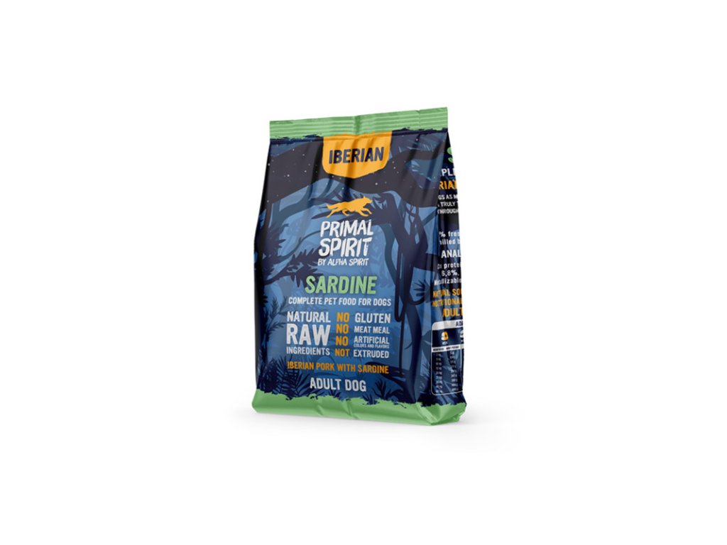 Primal Spirit Dog 70% Iberian Pork with Sardine za studena lisované granule pre dospelých psov všetkých plemien s vysokým obsahom mäsa z ibérskeho prasaťa a čerstvých sardíniek, doplnené o hydrolyzovanú ryžu. Krmivo s nízkym obsahom obilnín. Bez obsahu lepku, mäsokostných múčok, bez umelých konzervantov, dochucovadiel a farbív. Krmivo bez extrudácie.Dodatočné parametre