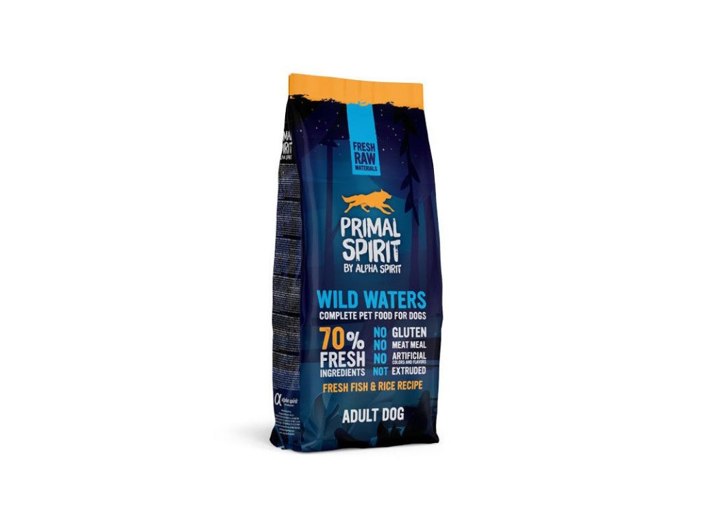 Primal Spirit 70% Wild Waters za studena lisované granule pre šteňatá a dospelých psov všetkých plemien s vysokým obsahom celých čerstvých rýb z Atlantiku doplnené o hydrolyzovanú ryžu, ovocie a zeleninu. Krmivo s nízkym obsahom obilnín. Bez obsahu lepku, mäsokostných múčok, bez umelých konzervantov, dochucovadiel a farbív. Krmivo bez extrudácie.Dodatočné parametre
