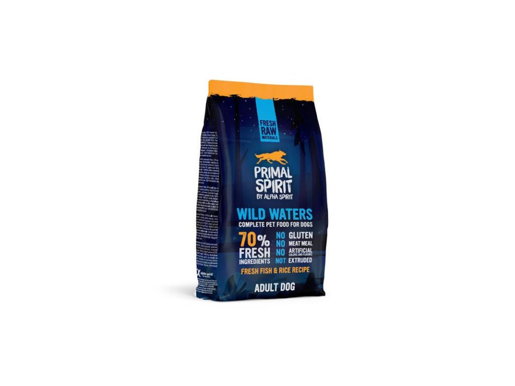 Primal Spirit 70% Wild Waters za studena lisované granule pre šteňatá a dospelých psov všetkých plemien s vysokým obsahom celých čerstvých rýb z Atlantiku doplnené o hydrolyzovanú ryžu, ovocie a zeleninu. Krmivo s nízkym obsahom obilnín. Bez obsahu lepku, mäsokostných múčok, bez umelých konzervantov, dochucovadiel a farbív. Krmivo bez extrudácie.Dodatočné parametre