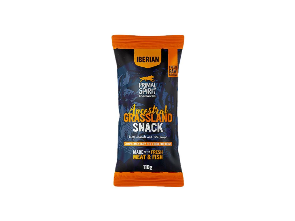 Primal Spirit Dog Iberian Snack - Ancestral Grassland je doplnková strava pre Vášho psa v každom štádiu vývoja, či už je pes šteňaťom, dospelým psom alebo seniorom. Primal Spirit Iberian Snack sú polovlhké za studena lisované kocky mäsa vo forme chutného snacku výborné na tréning alebo odmenu len tak z lásky k Vášmu psovi.Dodatočné parametre