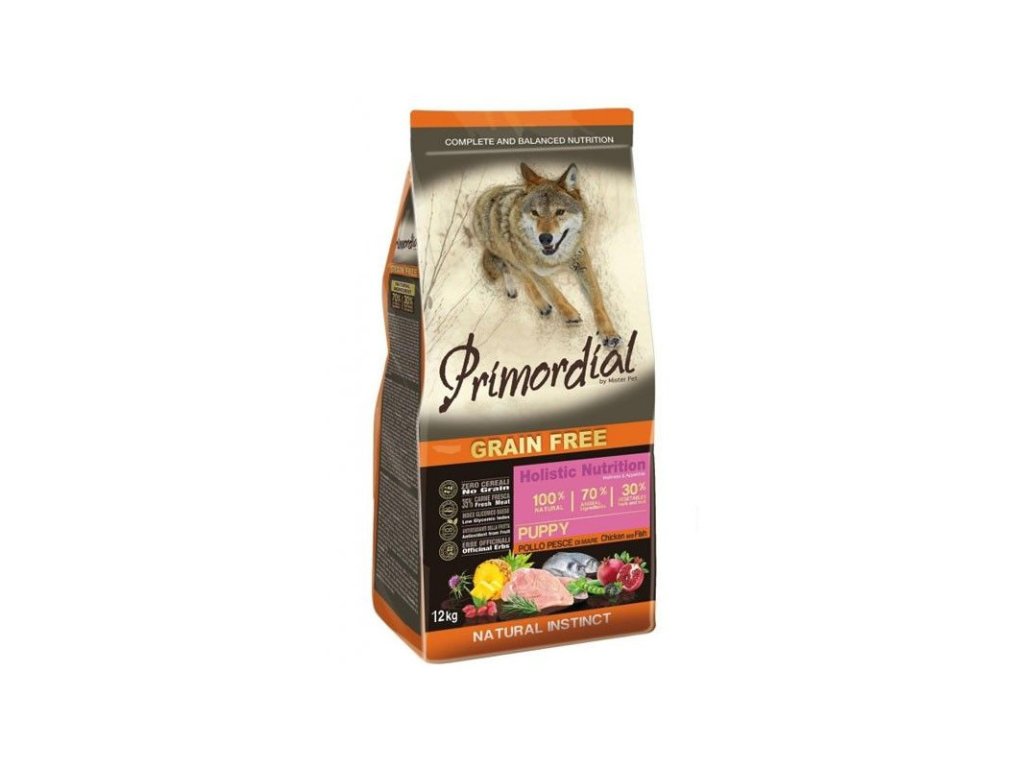 Primordial Grain Free Puppy Dog - kuracie s morskou rybou je kompletné bezobilninové krmivo pre šteňatá psov stredných a veľkých plemien so 70% obsahom živočíšnej zložky.Dodatočné parametre