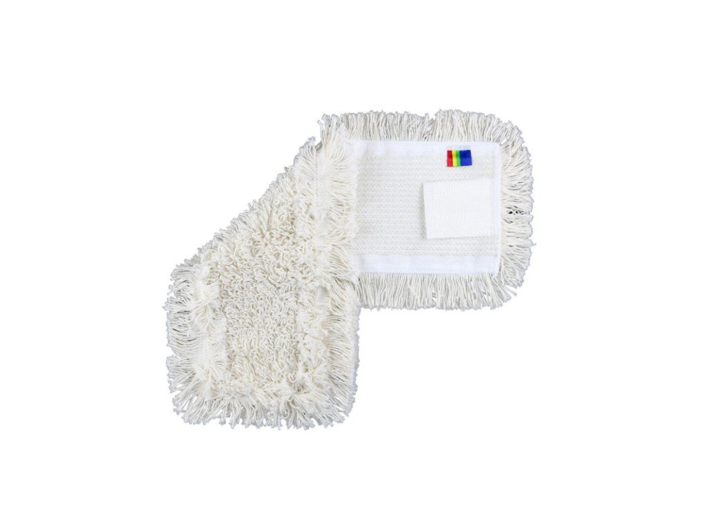 Profi Mop bavlna CLASSIC FLIPPER s farebným značením, 50cm Fixový(flipprový) bavlnený mop je vysokokvalitný bavlnený mop so šírkou 50 cm a uškami po stranách pre uchytenie na fixový držiak mopu. Jednotlivé vlákna bavlny sú na zadnej strane navzájom prepletené kvôli dlhšej životnosti mopu. Mopová časť je uchytená polyesterovou priadzou s vysokou trvanlivosťou. Na zvýšenie odolnosti polyesterovej spodnej textílie a vreciek sa používa ešte polyesterová stuha na zadnej strane, ktorú je možné farebne rozlíšiť aby mohol byť využívaný i v systéme HACCP. Tento bavlnený slučkový mop možno prať až 200 krát pri 95 ° C. Po prvom praní priadza výrazne zväčší svoj objem, čo zabezpečí účinnejšie umývanie a odstraňovanie nečistôt z podláh. Používa sa prevažne na mokré čistenie. Pred prvým použitím doporučujeme vyprať mop na 60°C Tento mop je kompatibilný pre všetky typy plastových fixových držiakov. Mop má na opačnej časti farebné prúžky, ktorými sa rozlišuje prostredie kde sa má s ním umývať ako, napr. jednotlivé oddelenia v nemocniciach, potravinárstve a iných... Bavlnený mop sa používa na umývanie podlahy, ako napr. prírodný a umelý kameň (dlažba), linoleum, guma atď. Parametre: Rozmery: 50 cm Materiál: Bavlna Farba: Farebné značenie Uchytenie: FLIPPER (uška na úchyt)Dodatočné parametre