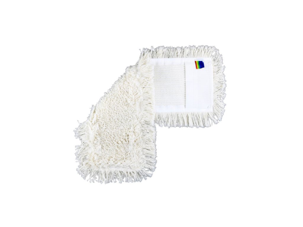Profi Mop bavlna kapsový, s farebným značením, 50 cm Kapsový bavlnený mop je vysokokvalitný bavlnený mop so šírkou 50 cm a kapsami po stranách pre lepšie uchytenie na držiak mopu. Jednotlivé vlákna bavlny sú na zadnej strane navzájom prepletené kvôli dlhšej životnosti mopu. Mopová časť a vrecká(kapsy) sú na mop šité s polyesterovou priadzou s vysokou trvanlivosťou. Na zvýšenie odolnosti polyesterovej spodnej textílie a vreciek sa používa ešte polyesterová stuha na zadnej strane, ktorú je možné farebne rozlíšiť aby mohol byť využívaný i v systéme HACCP. Tento bavlnený slučkový mop možno prať až 200 krát pri 95 ° C. Po prvom praní priadza výrazne zväčší svoj objem, čo zabezpečí účinnejšie umývanie a odstraňovanie nečistôt z podláh. Používa sa prevažne na mokré čistenie. Pred prvým použitím doporučujeme vyprať mop na 60°C Tento mop je kompatibilný pre všetky typy plastových a drôtených kapsových držiakov. Mop má na opačnej časti farebné prúžky, ktorými sa rozlišuje prostredie kde sa má s ním umývať ako, napr. jednotlivé oddelenia v nemocniciach, potravinárstve a iných... Bavlnený mop sa používa na umývanie podlahy, ako napr. prírodný a umelý kameň (dlažba), linoleum, guma atď. Parametre: Rozmery: 50 cm Farba: Farebné značenie Balenie obsahuje 1ks.