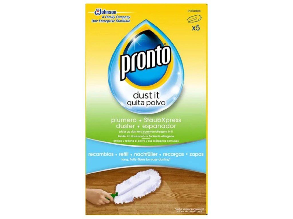 PRONTO Duster prachovka náhradné náplne 5ks Náhradné náplne pre prachovku Pronto Duster. Jej dlhé páperové vlákna dokážu odstrániť prach zo všetkých povrchov. Navyše zachytia aj množstvo nepríjemných alergénov a spríjemnia tak život alergikom. Doprajte si prostredie bez všadeprítomného prachu. Kľúčové vlastnosti: Vhodná na každodenné využitie Efektívne zachytáva prach a bežné alergény Vysoká účinnosť vďaka dlhým páperovým vláknam Hygienická čistota a rýchle výsledky Jednoduché použitie Farba: biela Celková dĺžka: 11,4 cm Počet násad v balení: 5 ks Cena je za bal./5 ksDodatočné parametre