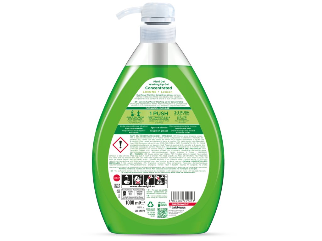 Prostriedok na riad DUAL POWER Limone - 1L/250 dávok