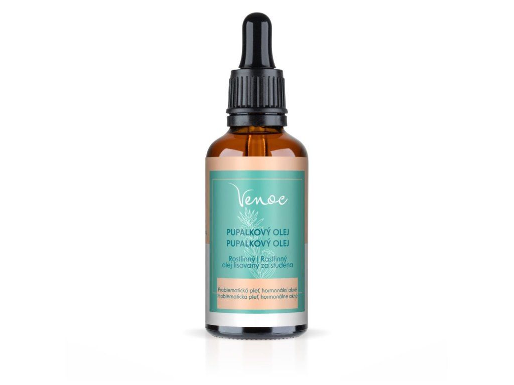 Pupalkový olej Venoc 50ml Pupalkový olej Venoc je 100 % prírodný pleťový olej lisovaný za studena zo semien pupalky dvojročnej (Oenothera biennis). Tento výnimočný olej patrí medzi najbohatšie rastlinné zdroje kyseliny gama-linolénovej (GLA), ktorá podporuje regeneráciu pokožky, obnovu buniek a hormonálnu rovnováhu. Jeho účinky ocenia najmä ženy s problematickou alebo hormonálne nevyváženou pleťou, ktoré trpia akné, suchosťou alebo podráždením v období menštruácie či menopauzy. Pupalkový olej pomáha zmierniť zápaly, podporuje hojenie vyrážok a súčasne hydratuje pleť bez upchávania pórov. Olej je vyrobený z bio surovín najvyššej kvality, šetrne spracovaných tak, aby si zachovali maximum účinných látok. Benefity pupalkového oleja: pomáha zlepšovať stav problematickej pleti a zmierňuje hormonálne akné, regeneruje a vyživuje pleť, čím zvyšuje jej pružnosť a vitalitu, upokojuje podráždenie a začervenanie, spomaľuje predčasné starnutie a zjemňuje vrásky, vyrovnáva hormonálnu nerovnováhu pokožky prirodzenou cestou, vhodný aj na suchú a citlivú pokožku. Použitie: Naneste niekoľko kvapiek oleja na čistú, mierne vlhkú pokožku tváre, krku alebo dekoltu. Jemne vmasírujte, aby sa olej vstrebával do hĺbky. Môžete ho používať samostatne, ako podklad pod krém, alebo pridať do obľúbeného séra či masky. Vhodný aj na vlasovú pokožku – upokojuje svrbenie a vyživuje korienky vlasov. Pre koho je určený: Pre ženy, ktoré trpia hormonálnym akné, suchosťou alebo stratou pružnosti pleti. Vhodný pre citlivú, problematickú i zrelú pokožku. Pupalkový olej odporúčame používať večer ako regeneračný elixír alebo ako súčasť dennej rutiny v chladnom období. Upozornenie: Len na vonkajšie použitie. Skladujte na chladnom, suchom a tmavom mieste mimo dosahu slnečného svetla. Vyhnite sa kontaktu s očami. Pri alergii na ktorúkoľvek zložku produkt prestaňte používať.Dodatočné parametre