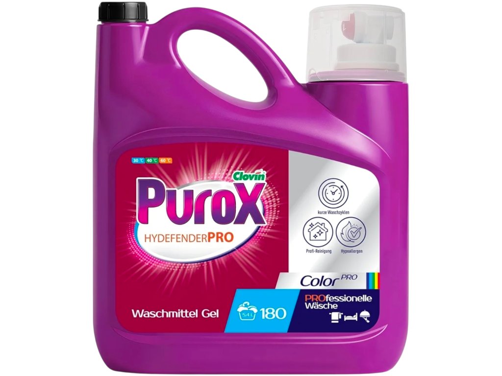 Purox Hydefender Color 5,4 l je moderné riešenie, ktoré kombinuje účinnosť prania, hygienu a bezpečnosť. Je hypoalergénny a šetrný k životnému prostrediu, takže je perfektnou voľbou pre každú domácnosť alebo firmu.