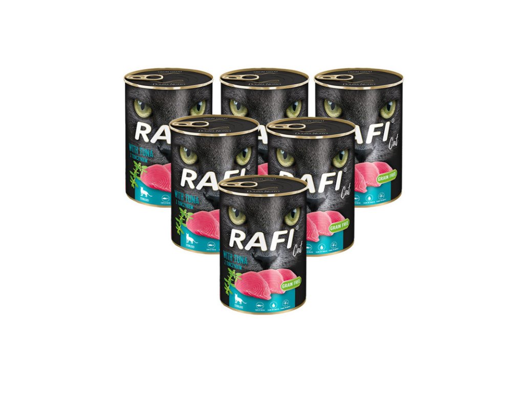 Rafi Cat Adult Grain Free predstavuje kompletné krmivo pre dospelé kastrované mačky bohaté na mleté mäso a zníženým obsahom tuku. Bezobilninové krmivo s obsahom tuniaka.Dodatočné parametre