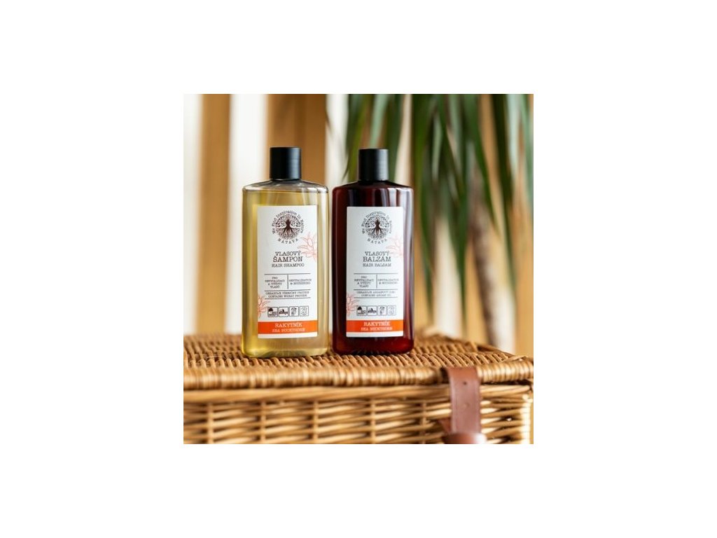 Rakytníkový balzam na vlasy Natava 250ml Extrakt z rakytníka intenzívne vyživuje vlasy aj vlasovú pokožku, čím podporuje ich zdravie a vitalitu. Vďaka svojim výživným vlastnostiam pomáha predchádzať lámavosti vlasov, zvyšuje ich pružnosť a zanecháva ich hebké, hladké a plné života. Panthenol pôsobí blahodárne na vlasy a vlasovú pokožku. Vlasom dodáva objem, vytvára na nich ochranný film, bráni ich vysychaniu a hydratuje ich. Vďaka jeho účinkom sú vlasy hebké, lesklé a ľahšie sa rozčesávajú, čím sa predchádza ich štiepeniu a lámavosti. Argánový olej má blahodarné účinky na vlasovú pokožku aj samotné vlasy, ktoré jemne čistí a hydratuje. Je bohatý na vitamíny, antioxidanty a esenciálne mastné kyseliny, ktoré intenzívne vyživujú vlasové folikuly a posilňujú vlasové korienky, čím podporujú zdravý rast vlasov. Zároveň dodáva vlasom hebkosť, pružnosť a prirodzený lesk. Balzamy rady Natava poskytujú dokonalú starostlivosť vďaka obsahu rastlinných extraktov a dodávajú vlasom silu z prírody prirodzenou cestou. Natava prepája prírodnú energiu v podobe bylinných výťažkov v Bio kvalite s najnovšími vedeckými poznatkami. Obsahuje kvalitné certifikované prírodné ingrediencie pochádzajúce z kontrolovaného ekologického poľnohospodárstva alebo z certifikovaných zberov vo voľnej prírode.Dodatočné parametre