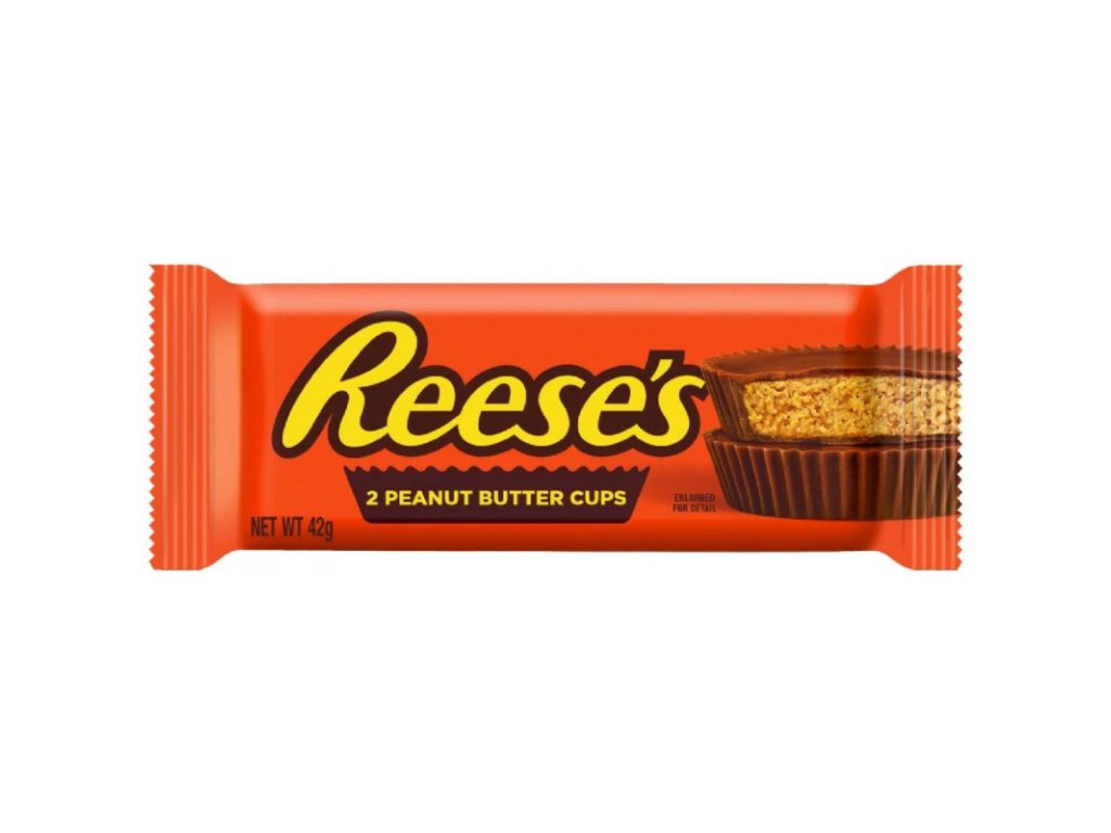 Reese's 2 Peanut Butter Cups 42g Dva košíčky Reese's z mliečnej čokolády plnené arašidovým maslom. Reese’s je americká značka sladkých dobrôt z čokolády a arašidového masla, ktorej začiatky sa začali písať už pred takmer 100 rokmi. Značku preslávili najmä chuťovo vyladené čokoládové košíčky plnené arašidovým maslom. Pripojte sa k miliónom ľudí na celom svete, ktorí prepadli geniálnej chuti charakteristickej iba pre Reese’s a pochutnajte si na ich poctivých a skvelých sladkostiach, ktoré vám zaručene spríjemnia deň. Zloženie: Čokoládová poleva: (cukor, kakaové maslo , kakaová hmota, odtučnený mliečny prášok, mliečny tuk , laktóza (mlieko). Emulgátory, sójový lecitín , polyglycerolpolyricinoleát). Arašidové maslo (45%): ( arašidy , cukor, dextróza, mliečny tuk , soľ, emulgátor, sójový lecitín , antioxidanty, propylgallát, askorbyl palmitát, kyselina citrónová) Alergény sú vyznačené tučným písmom. Výživové údaje na 100 g: Energetická hodnota [kJ]: 2274 Energetická hodnota [kcal]: 544 Tuky [g]: 31 z toho nasýtené mastné kyseliny [g]: 10 Sacharidy [g]: 51,8 z toho cukry [g]: 50,1 Bielkoviny [g]: 10,8 Soľ [g]: 0,7 Skladovanie: Skladujte v suchu, chráňte pred teplom. Cena je za bal./42g